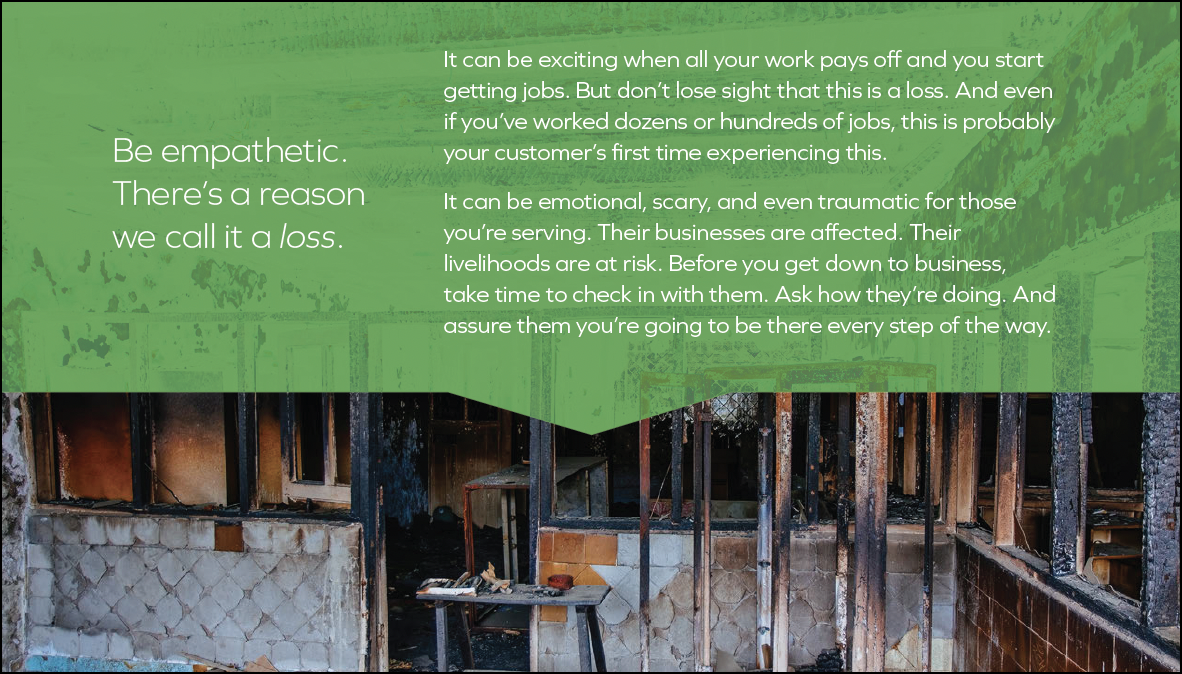 The following playbook sections prep reps for sensitive situations in trauma cleanup and property restoration.